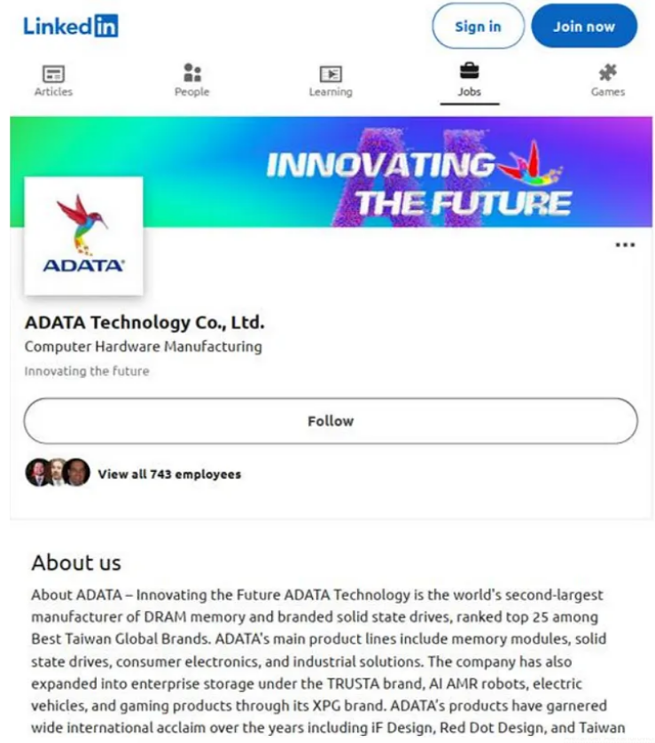 Source: https://ar.linkedin.com/company/adata-technology