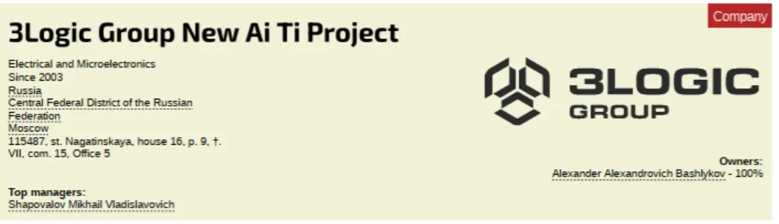 We warmed up by introducing Adata, now let’s focus on its Russian BFF and favorite partner in crime 3Logic Group (INN 7724338125). Based in Moscow at Kagatinskya D6 Str 9 Com 15 Office 5, and also known as NEW AI IT PROJECT, 3Logic develops and produces hardware and computer components. Owned and managed by sanctioned Alexander Alexandrovich Bashlykov, it would employ around 1 500 people.