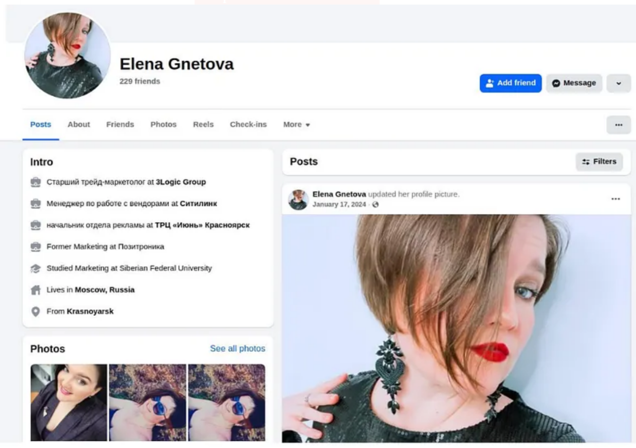 To complete our investigation, we tried to OSINT more about Mikhail Chizhikov and Elena Gnetova without much results. Mikhail Chizhikov keeps a low profile and Elena Gnetova is very open about her position at 3Logic Group on her Facebook account.