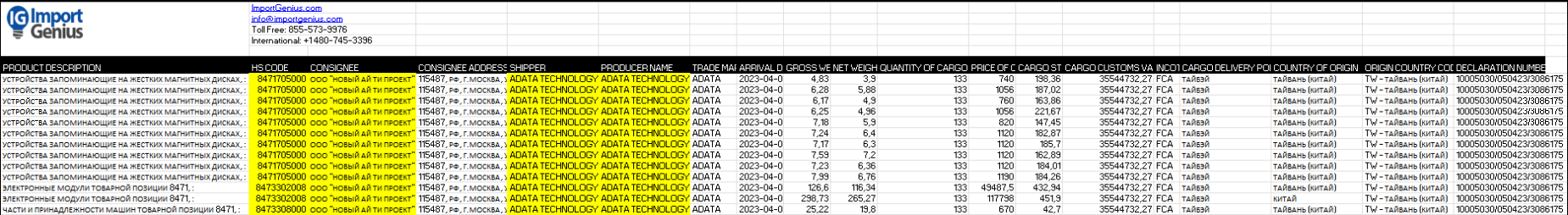 Adata Technology produces merchandise listed as high priority items concerned by HS codes. HS for Harmonized System codes for goods classification, a list which allows to identify high-tech dual-use (i.e. civilian and military grade) items. These dual-use assets, such as the external HDD, might be diverted from their original purpose and employ as component in military products.